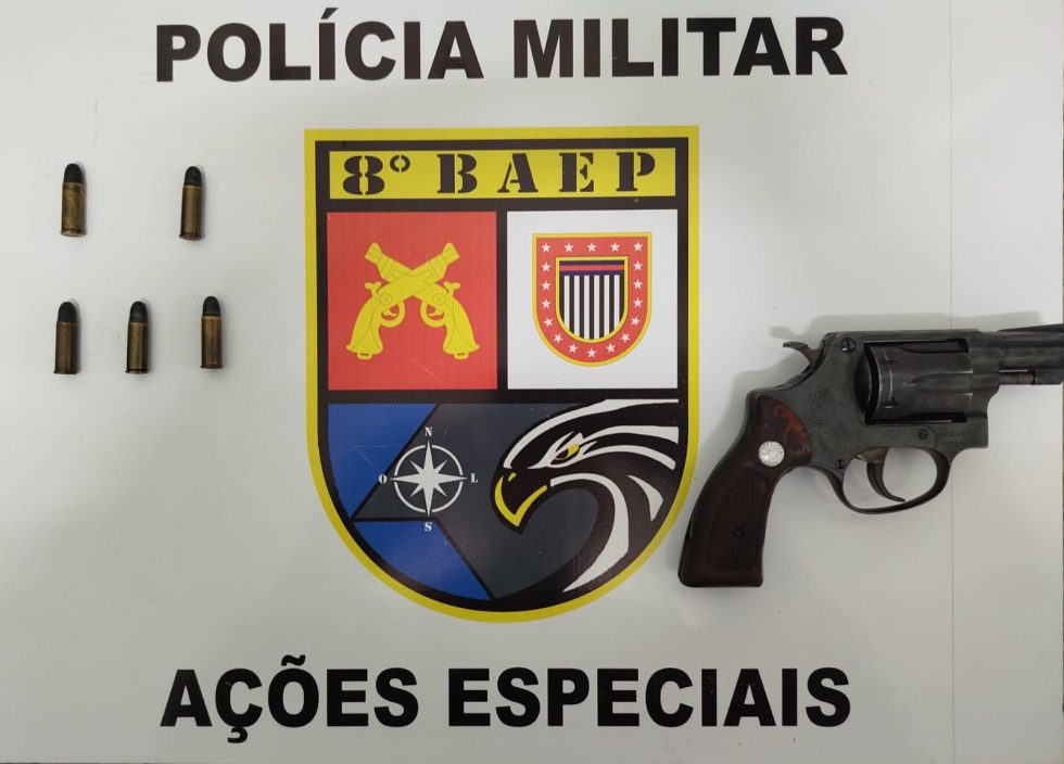 Os polícias localizaram 01 (um) revólver calibre .32, bem como 05 (cinco) munições intactas.