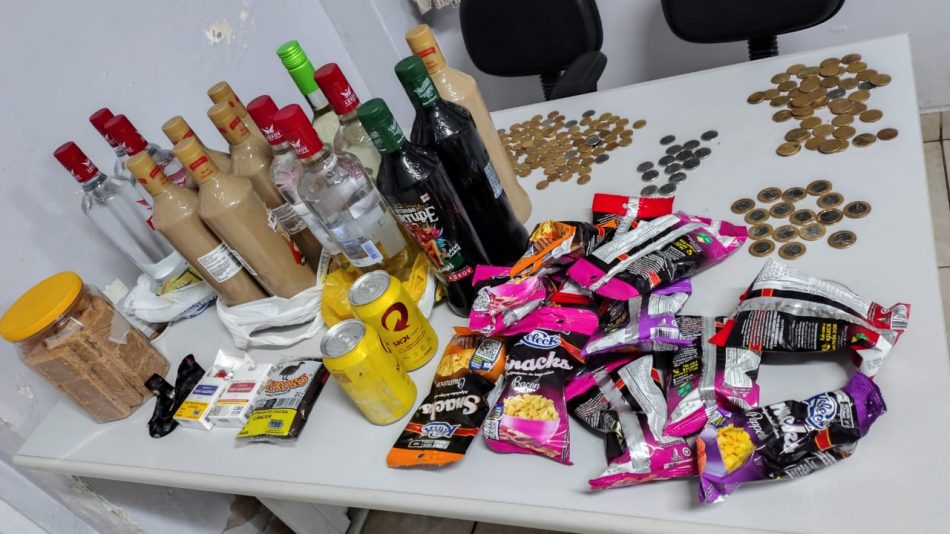 Segundo apuração no local, o homem escalou um muro de aproximadamente quatro metros, rompeu a concertina, destelhou parte do bar e entrou pelo forro do banheiro para acessar o interior do estabelecimento. Foram recuperadas diversas garrafas de batida de amendoim, vodka, catuaba, cerveja, além de uma bebida sabor lemon, salgados, cigarros, dinheiro em moedas e dezenas de paçoquinhas.