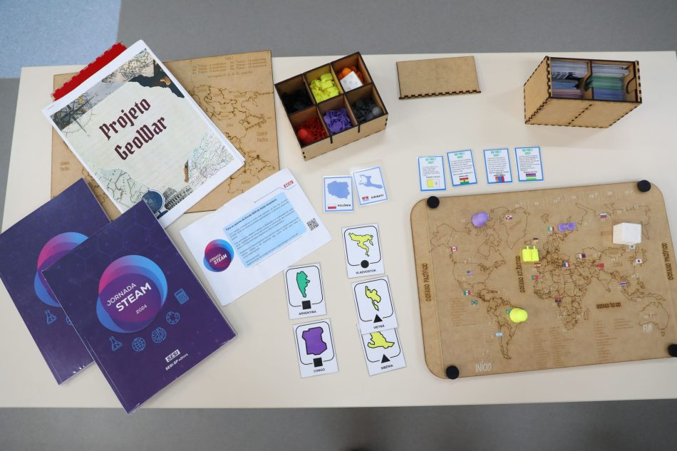 O artigo apresenta o GeoWar, um jogo de tabuleiro desenvolvido no Espaço Maker da escola, que utiliza a gamificação para estimular o aprendizado de Geografia. Com peças confeccionadas pelas próprias alunas, o projeto nasceu como uma ferramenta didática para facilitar a compreensão do espaço geográfico mundial e rapidamente ganhou repercussão dentro e fora da unidade.