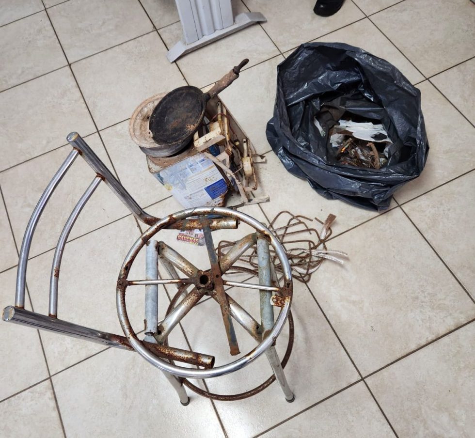 Ao retornar, o empreiteiro flagrou o homem separando materiais e objetos para levar, incluindo itens que já estavam do lado de fora da residência. Diante da situação, ele trancou o portão e acionou a polícia.