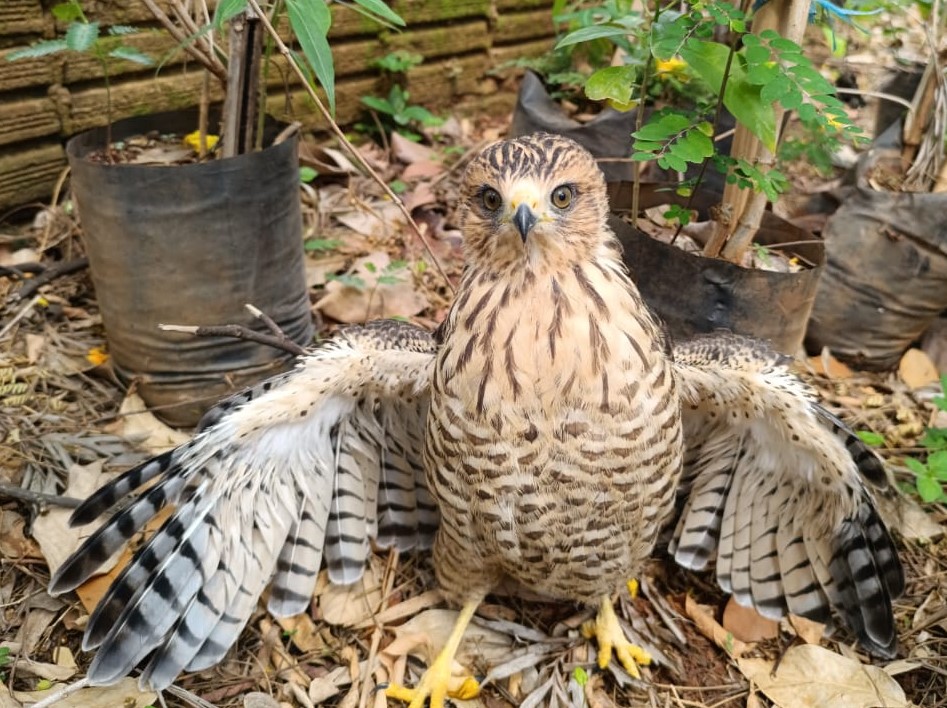 “No zoológico há outro gavião da mesma espécie, o que facilita o aprendizado sobre o comportamento e as características do habitat. Ele já iniciou o voo, mas ainda está um pouco atrapalhado, pois está trocando as penas. Depois de completar um ano, estará pronto para retornar à natureza”, explicou o biólogo.