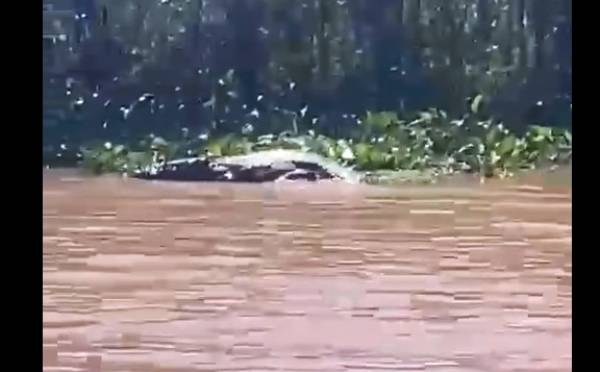 Assustado, Lucas retornou até a margem e chamou um amigo para ajudar na filmagem. Juntos, conseguiram registrar o animal em meio à vegetação alta, a cerca de 300 metros de algumas residências.