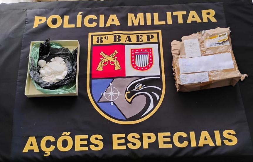 O pacote foi aberto pela esposa e em seu interior havia quantidade considerável de cocaína, realizada busca domiciliar e nada localizado. As mulheres informaram que o homem estaria em seu local de trabalho.