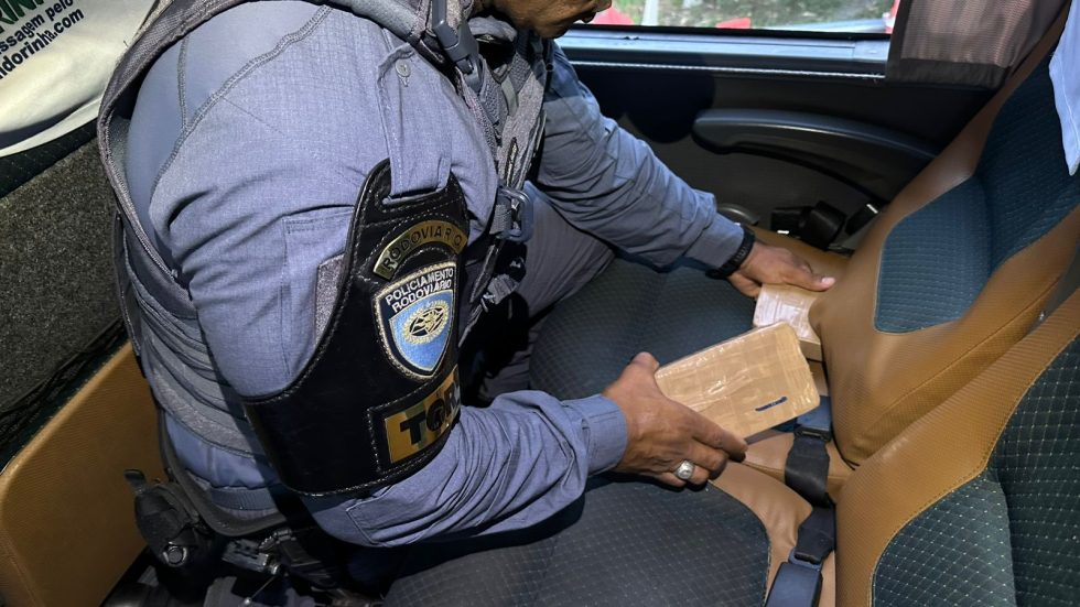 Durante a fiscalização, o passageiro apresentou informações contraditórias sobre o motivo da viagem, o que levantou suspeitas da equipe. Em vistoria inicial nos pertences pessoais, nada de irregular foi encontrado. No entanto, ao inspecionar a poltrona ocupada por ele, os policiais localizaram dois tabletes de pasta base de cocaína escondidos no encosto do assento.