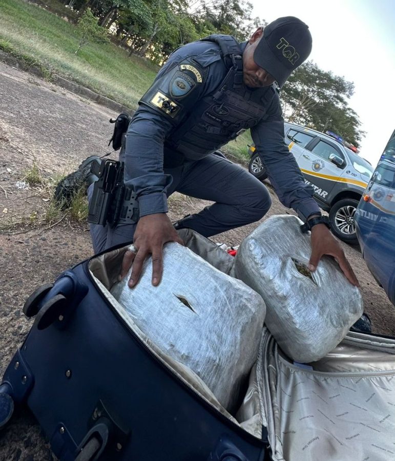 Durante a vistoria, os agentes localizaram na mala de um dos passageiros dois pacotes contendo a droga conhecida como skunk. Após a pesagem, o entorpecente totalizou 8,590 quilos.