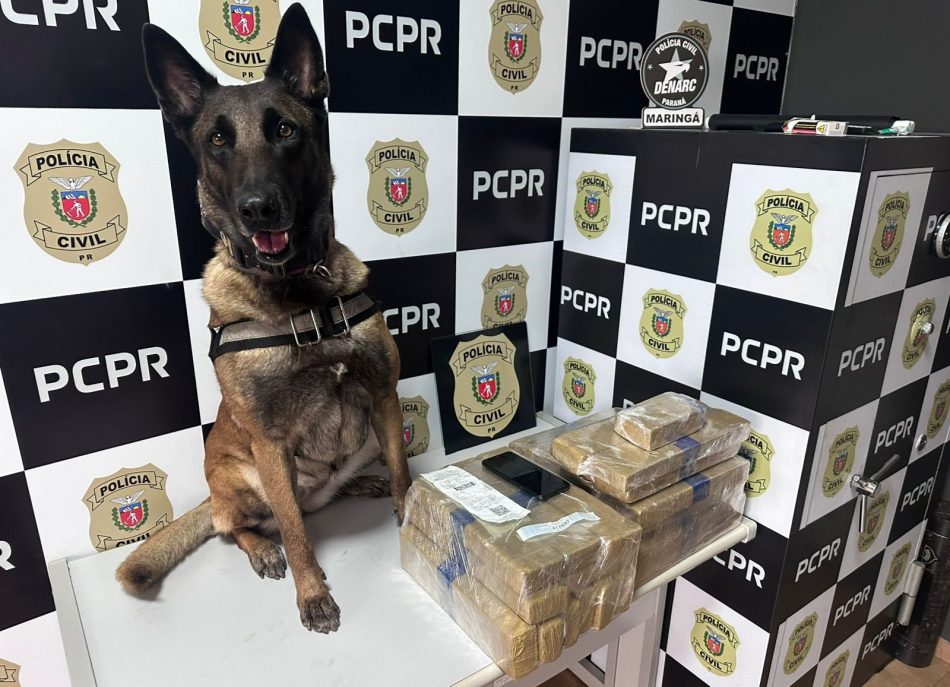 A Polícia Civil do Paraná (PCPR) prendeu um homem, de 22 anos, em flagrante pelo crime de tráfico de drogas, na rodoviária de Maringá, neste último domingo, 11 de janeiro, após um cão de faro da PCPR localizar os entorpecentes.