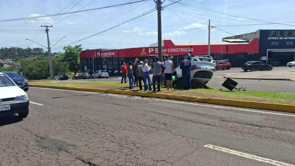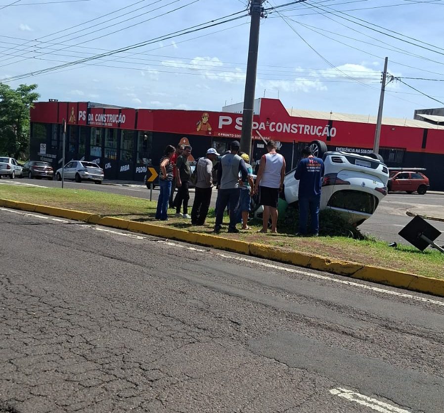 Um carro capotou na tarde desta quarta-feira (10) na avenida Juscelino Kubitscheck de Oliveira, no Jardim Jequitibás, em Presidente Prudente. O acidente foi registrado pelo Copom às 14h12.