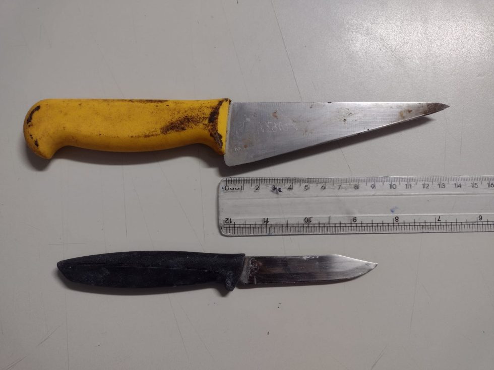 Durante a vistoria, os policiais encontraram três facas no interior do automóvel, sendo uma delas na porta do passageiro e outras duas no porta-malas. Imagens e fotos dos suspeitos foram enviadas para equipes que estavam no local do crime, que confirmaram a identificação dos envolvidos.