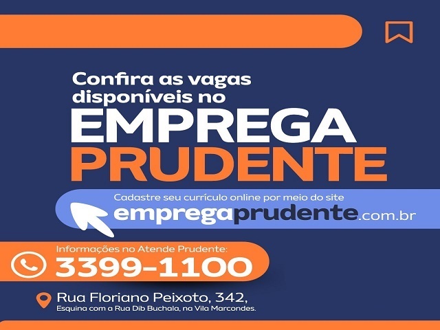 Todas as oportunidades podem ser consultadas no Mural de Vagas, no site empregaprudente.com.br, plataforma que substituiu o antigo sistema do Balcão de Empregos.