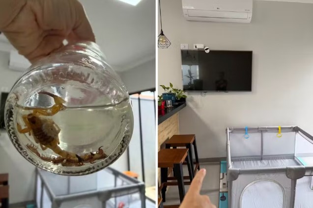 Após identificar o risco, o pai realizou uma varredura no imóvel e localizou a escorpião adulta dentro de uma cervejeira, possivelmente atraída pela umidade do reservatório do eletrodoméstico. O animal foi capturado e, apesar do susto, o bebê não sofreu nenhum ferimento.