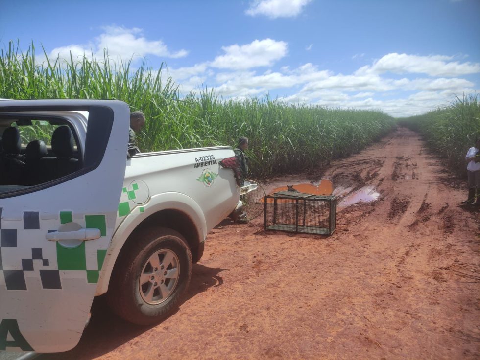 Após a localização, os policiais ambientais realizaram captura técnica e segura do animal, procedimento necessário para evitar riscos tanto ao filhote quanto aos agentes envolvidos no resgate.