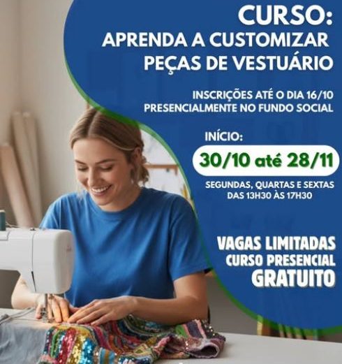 O Fundo Social de Presidente Prudente anuncia mais uma oportunidade de capacitação voltada à geração de renda: o curso “Aprenda a customizar peças de vestuário”. A iniciativa busca incentivar a criatividade, além de oferecer alternativas para quem deseja empreender no setor de moda ou garantir uma renda extra.