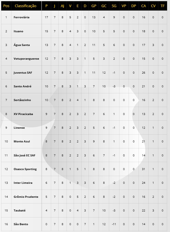 CLASSIFICAÇÃO DO PAULISTÃO A2 RIVALO: