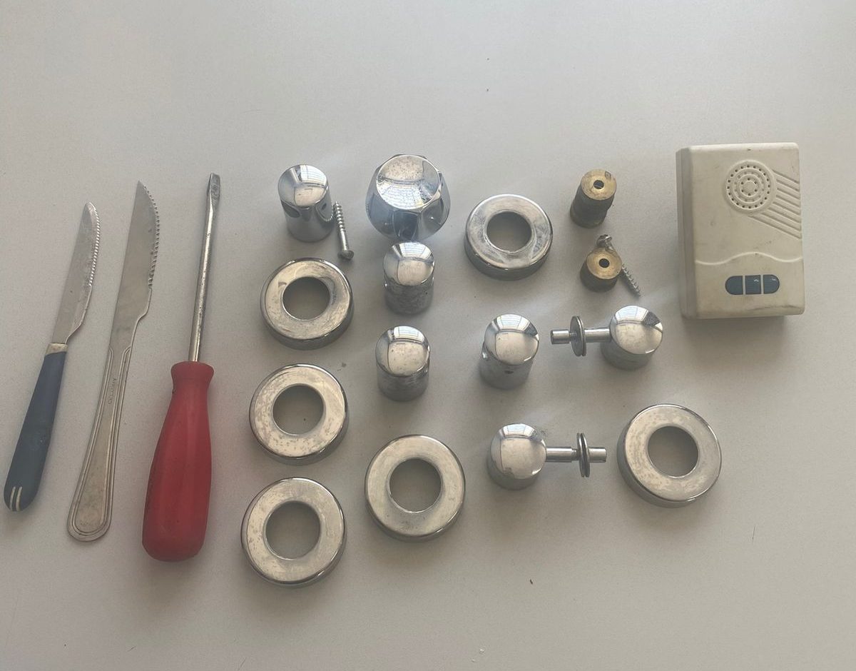Ao chegarem ao local, os policiais encontraram todas as portas inferiores trancadas, mas conseguiram subir até a parte superior, onde a porta da varanda estava aberta. Dentro do prédio, o suspeito foi flagrado reunindo diversos objetos de metal e acessórios de banheiro, além de ferramentas usadas para removê-los, como facas e chave de fenda. Segundo a PM, ele chegou a desrosquear torneiras e retirar peças de acabamento que continham cobre.