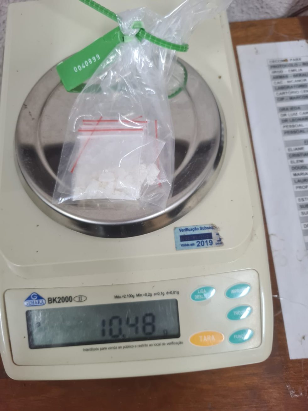 Foram apreendidos um aparelho celular da marca LG, modelo K50 S, a quantia de R$ 50 e sete porções de cocaína acondicionadas em invólucros plásticos, totalizando 5,46 gramas da substância, conforme registro do boletim de ocorrência. A motocicleta utilizada também foi apreendida. Segundo a polícia, o entorpecente estava fracionado em porções individualizadas, característica típica de comércio ilícito.