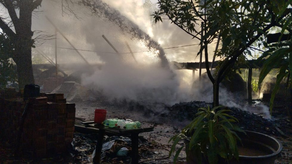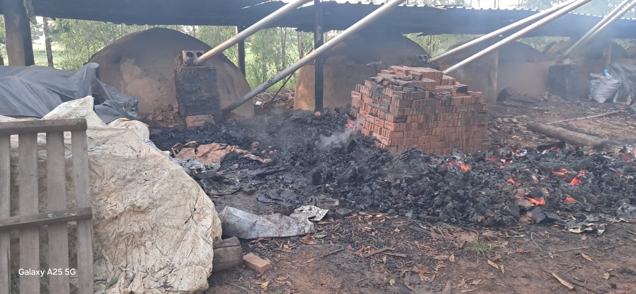 De acordo com as informações apuradas, um dos fornos de carvão desabou, provocando o início do incêndio, que rapidamente se espalhou para o depósito de madeiras existente na área.