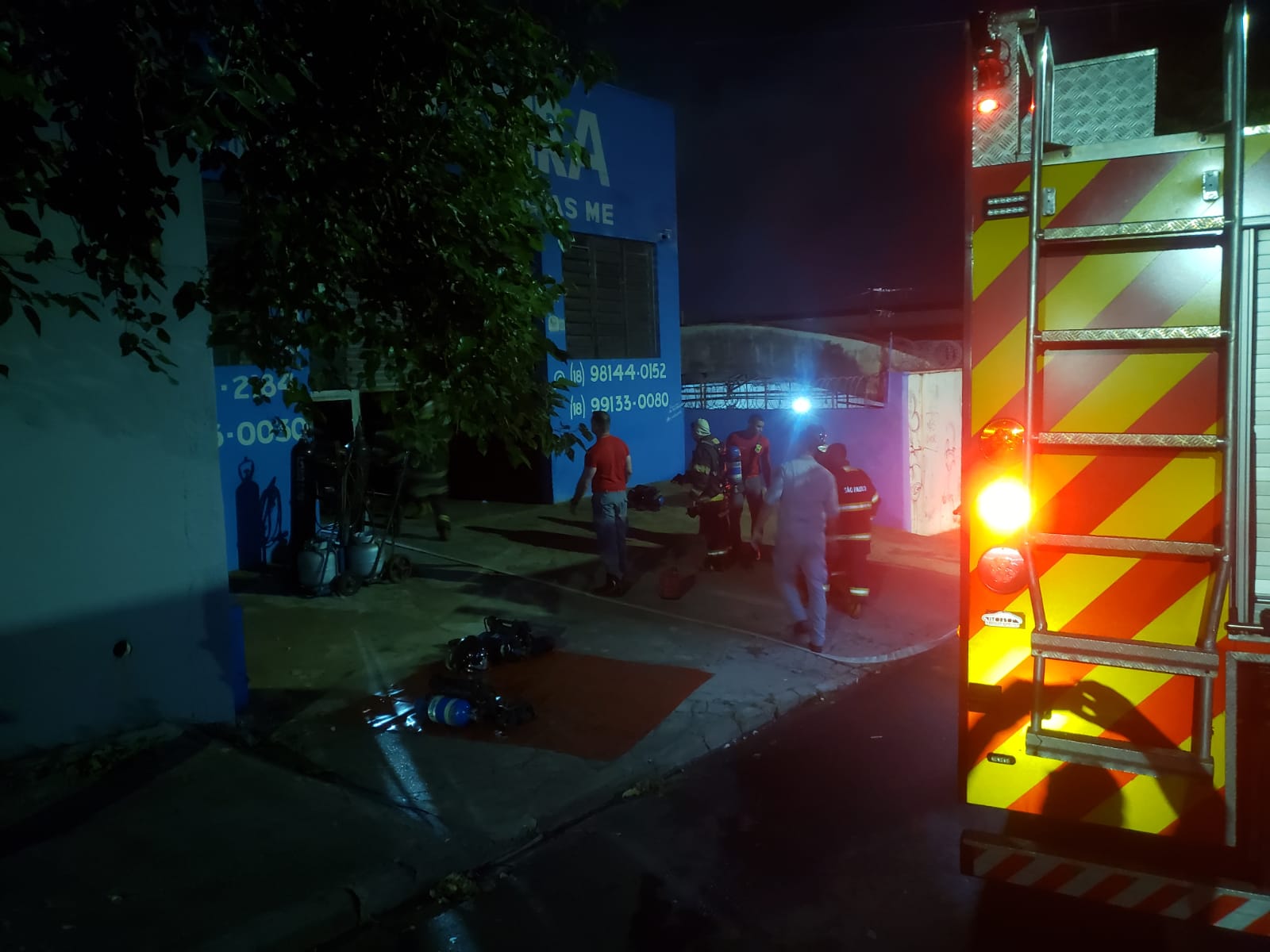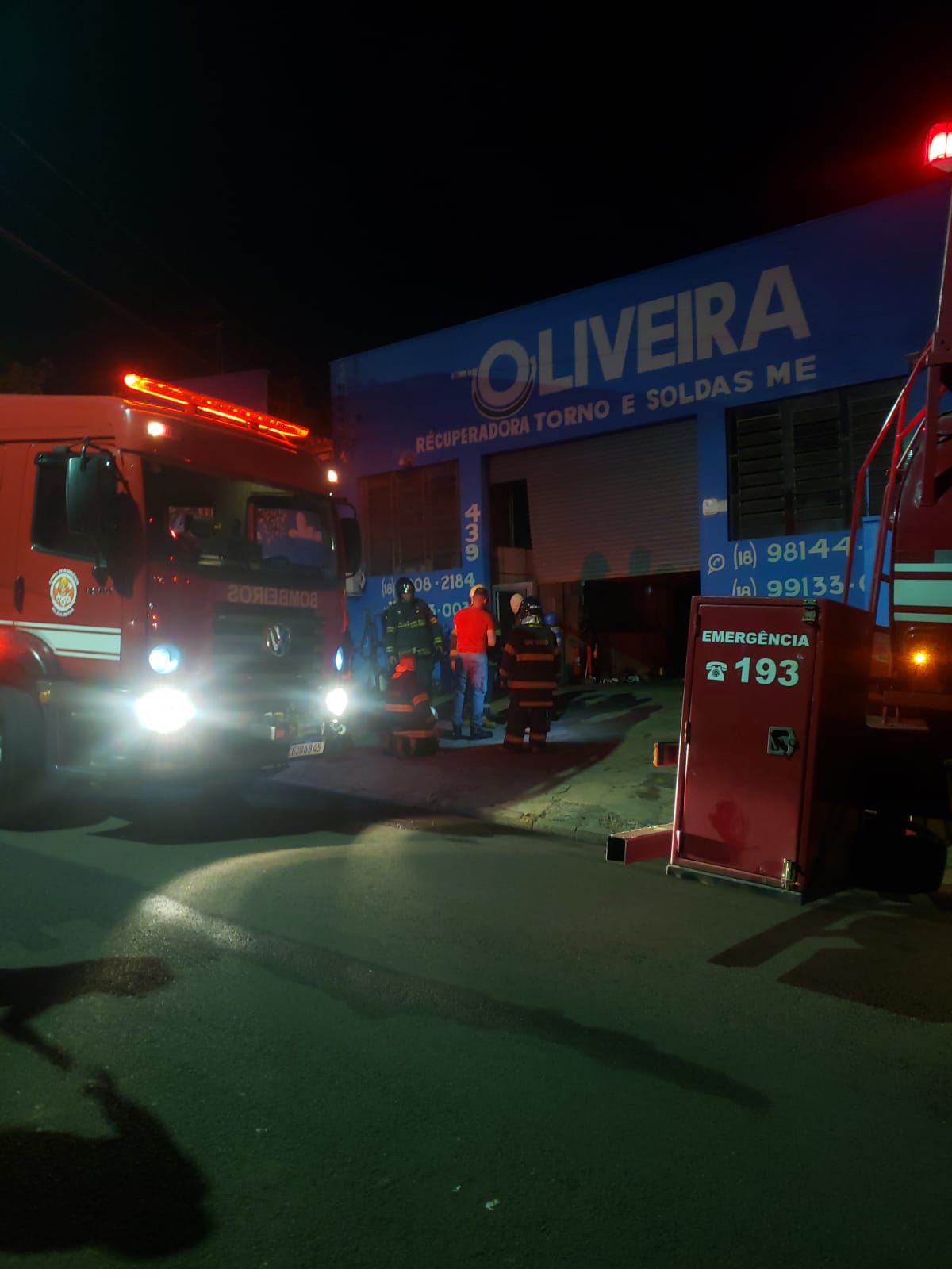 O incêndio começou por volta das 19h45. Equipes do Corpo de Bombeiros chegaram rapidamente e conseguiram controlar o fogo, evitando que ele se alastrasse para a oficina e para outros imóveis próximos. Após a extinção das chamas, os bombeiros permaneceram no local por várias horas realizando o rescaldo, já que partes da estrutura de madeira ainda apresentavam calor.