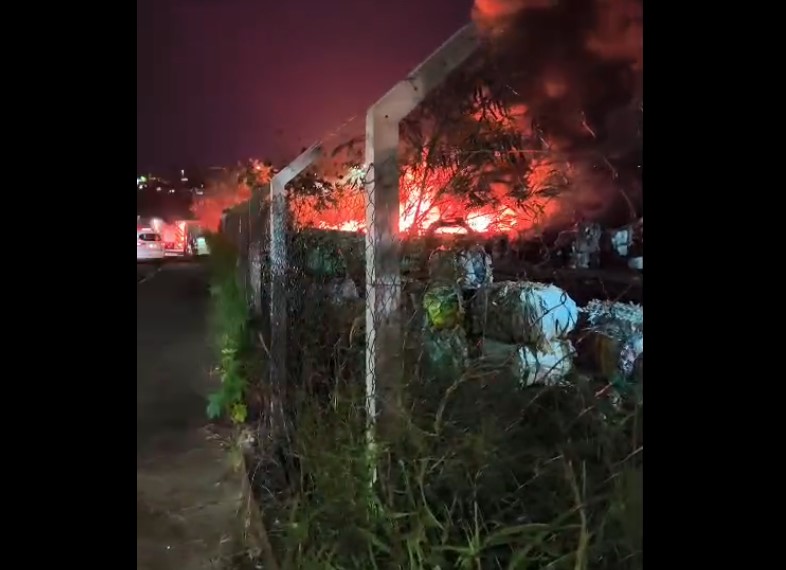 Um incêndio destruiu um depósito de materiais recicláveis na avenida Élson Neris da Silva, no jardim Sabará, próximo à rotatória do Cristo, na noite desta quarta-feira (10), em Presidente Prudente. As chamas começaram por volta das 19h40, segundo o Corpo de Bombeiros.