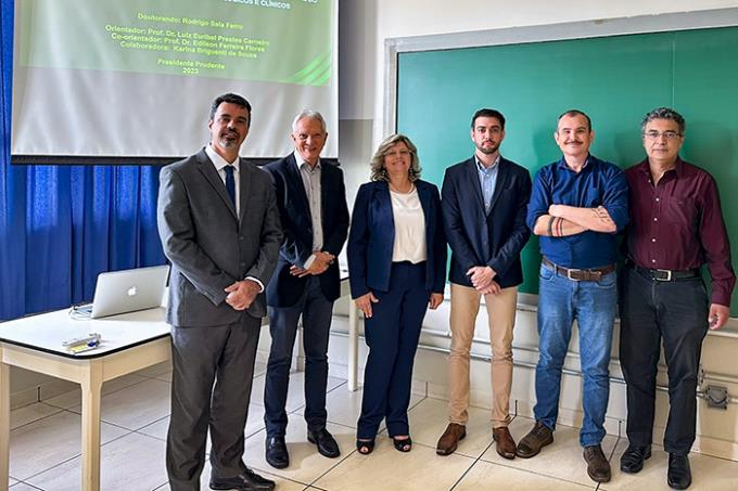Além do orientador, Dr. Luiz Euribel Prestes Carneiro, a banca examinadora foi constituída pela Dra. Lourdes Aparecida Zampieri D’Andrea, do Instituto Adolfo Lutz em Presidente Prudente; Dr. Rogério Giuffrida e Dr. Marcus Vinicius Pimenta Rodrigues, ambos da Unoeste; e Dr. Mauricio Domingues Ferreira, do Hospital das Clínicas, da Faculdade de Medicina da Universidade de São Paulo (USP).