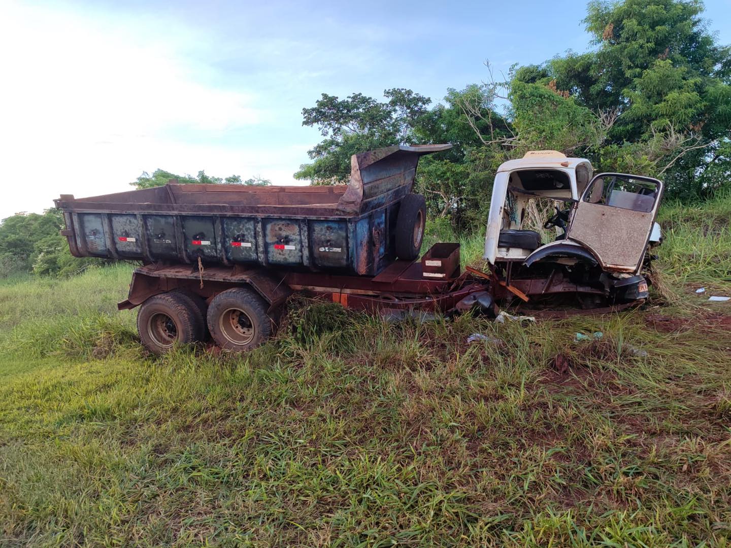 Segundo informações preliminares, o condutor de um caminhão M. Benz LK 2220, com placas de Paranapoema/PR, perdeu o controle da direção, atravessou a pista e colidiu contra um barranco além do acostamento.