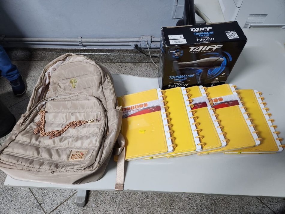 De acordo com o boletim de ocorrência, a Polícia Militar foi acionada após a suspeita de um furto na farmácia. A mulher já havia deixado o local e seguia em direção à avenida Brasil, sendo localizada pouco depois em frente a um comércio da região. Funcionários relataram que ela havia subtraído um secador de cabelo da farmácia, além de produtos da Lojas G situada nas proximidades.