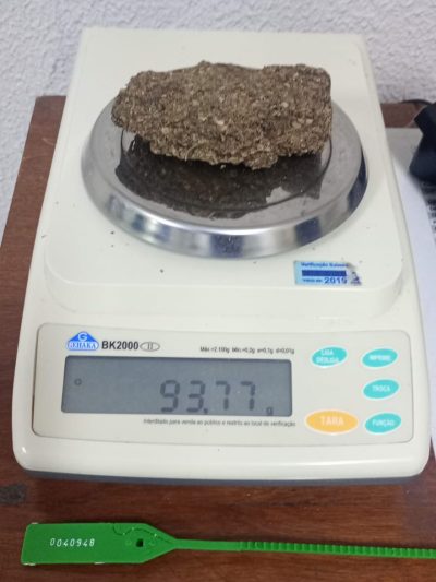 Durante a revista dos objetos, procedimento padrão realizado pelos policiais civis, foi encontrada uma porção de maconha escondida dentro do cobertor. A droga apreendida pesava cerca de 93,7 gramas.