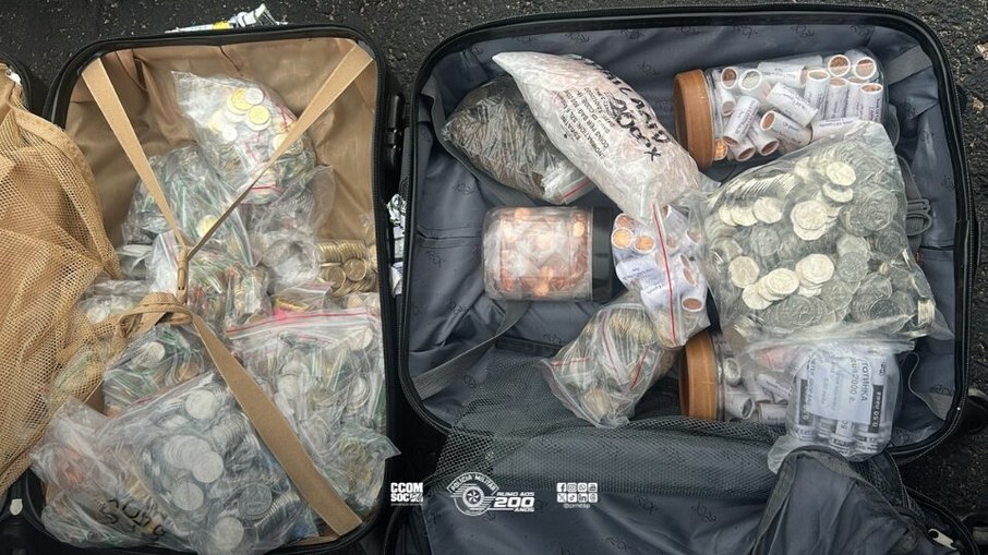 No bagageiro, foram localizadas 15 malas contendo milhares de cédulas e moedas estrangeiras, de diferentes países da América, África e Ásia, entre eles Venezuela, Irã, Nigéria, Indonésia e Síria.
