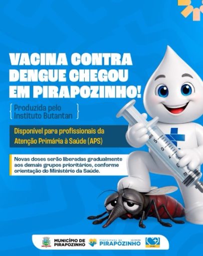 O município de Pirapozinho recebeu doses da vacina contra a dengue, desenvolvida pelo Instituto Butantan, e já iniciou a aplicação no público prioritário.