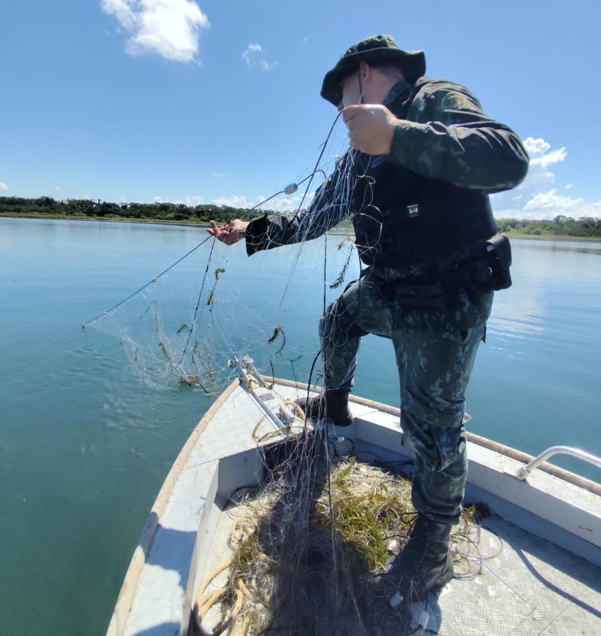 Nos equipamentos, foram encontrados aproximadamente 30 quilos de peixes das espécies curimba, cascudo, piranha e tucunaré. Os animais estavam vivos e foram devolvidos ao rio.