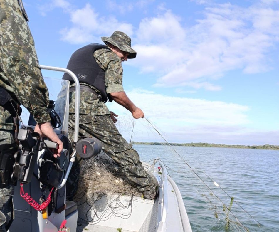 Durante a fiscalização, a equipe localizou redes armadas sem plaquetas de identificação, o que configura irregularidade. No total, foram recolhidos dois tirões de rede de nylon: um com 250 metros de comprimento, 1,80 metro de altura e malhas de 140 milímetros; e outro com 450 metros de comprimento, 1,80 metro de altura e malhas de 160 milímetros.