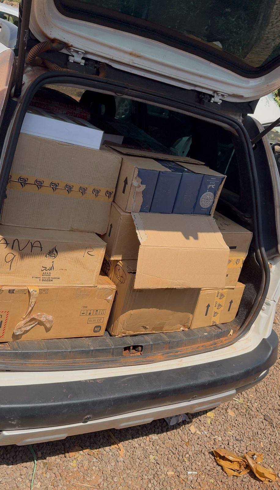 No início da tentativa de abordagem, o condutor empreendeu fuga, adentrando em seguida em uma chácara. No local, foram encontrados diversos veículos utilizados para transporte de mercadorias oriundas do Paraguai.