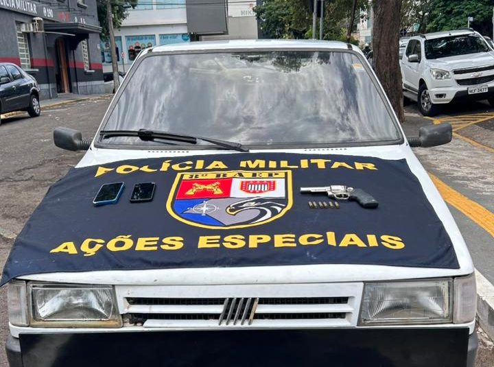 Com autorização da moradora, os policiais realizaram busca no imóvel, onde a arma e o eletrodoméstico foram apreendidos. Em seguida, o suspeito indicou o endereço de um comparsa, que também foi localizado e confessou o crime durante abordagem policial.