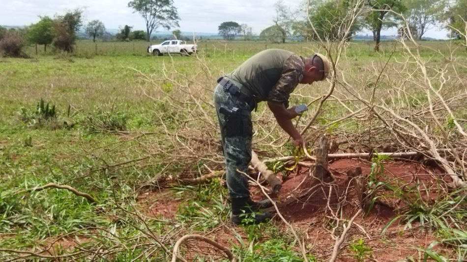 A ocorrência foi registrada durante uma fiscalização ambiental, motivada por denúncia de possível desmatamento. No local, os policiais verificaram, por meio de imagens comparativas obtidas em aplicativo próprio e observações diretas, que as árvores haviam sido cortadas com o uso de motosserra e golpes de machado, sem qualquer autorização do órgão ambiental competente. Os troncos originais ainda estavam no terreno, comprovando a infração.