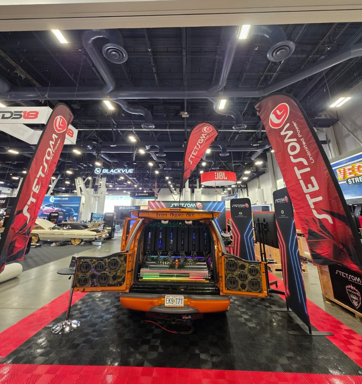 Com um stand de grande visibilidade, a Stetsom USA apresentou ao público seus mais recentes produtos, reforçando a força da marca no mercado internacional. Entre as atrações, chamou a atenção a pick-up personalizada do americano John Hart e sua esposa Celine, equipada com amplificadores da linha BRAVO, processadores de áudio, fontes automotivas e controles de longa distância. O veículo se tornou um dos pontos mais fotografados e visitados do espaço brasileiro.