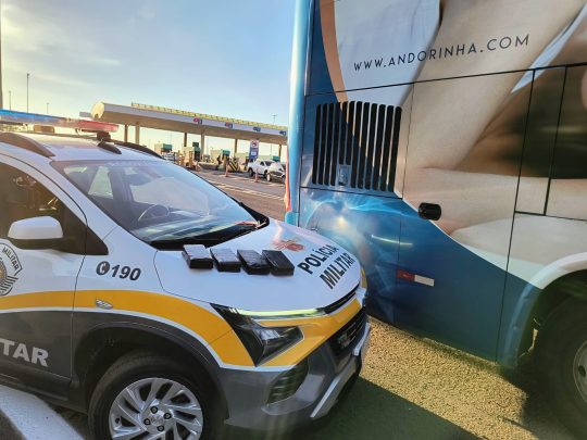 Durante a vistoria no veículo, a equipe localizou quatro tabletes de pasta base de cocaína escondidos dentro de uma poltrona. O passageiro responsável pelo assento admitiu a posse da droga, informando que havia ocultado parte do entorpecente em sua própria poltrona e o restante no assento ao lado.