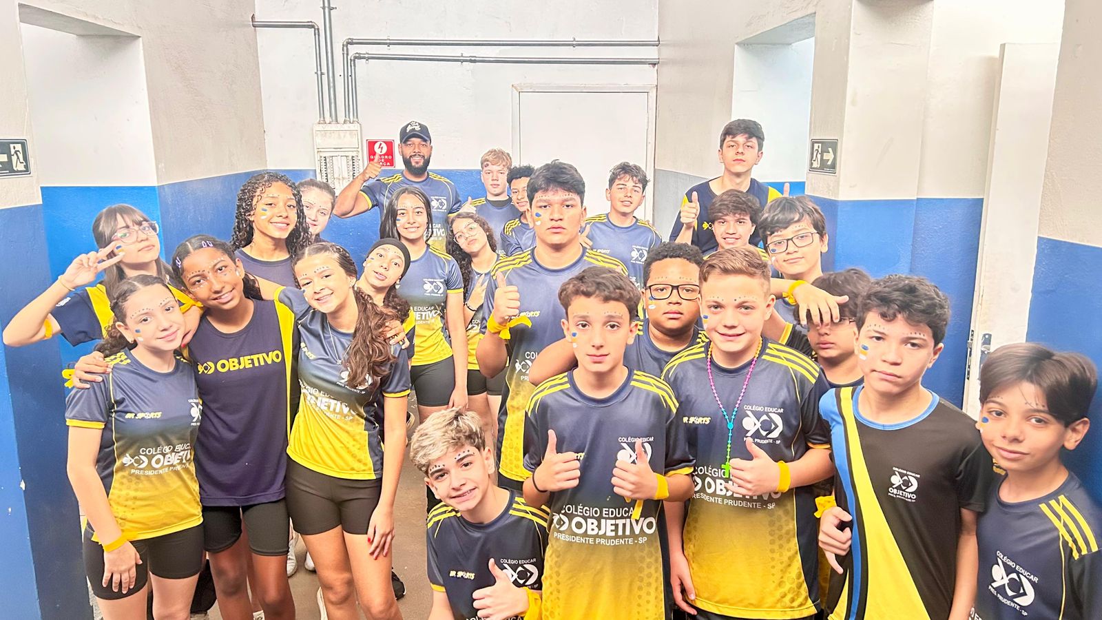 A unidade de Presidente Prudente do Colégio Educar Objetivo teve participação marcante no InterObjetivo 2025, realizado no dia 28 de novembro, em Martinópolis. O evento reuniu estudantes de colégios que utilizam o Sistema de Ensino Objetivo nas cidades de Bataguassu (MS), Álvares Machado, Presidente Prudente e Martinópolis, promovendo integração, amizade e espírito esportivo.